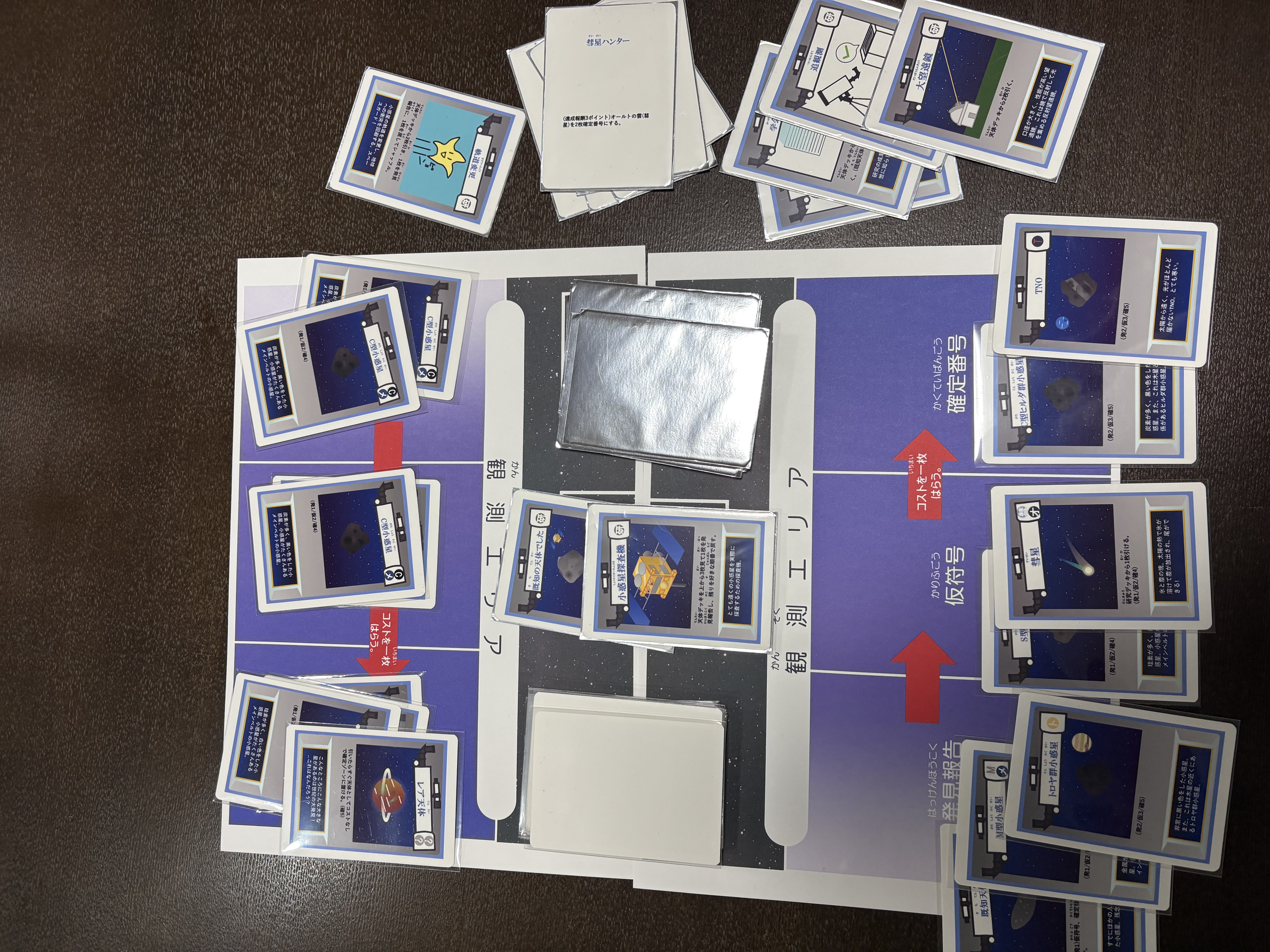 選評:開発者の方の天文好きがひしひしと伝わってくる内容が魅力的です。天文好きもそうでないプレイヤーも、本ゲームを通して天文について語り合えるでしょう。テストプレイを通した改善など、ゲームづくりに真摯に向き合っている点も評価されました。